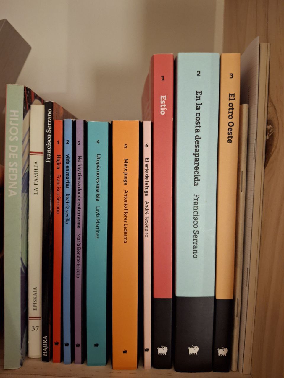 Episkaia es una editorial de tamaño minúsculo que lleva más de diez años publicando libros escogidos y variados: desde ensayo político a wéstern y de poesía costumbrista a ficción climática. No tenemos ánimo ni capacidad de lucro, y nuestro ritmo de publicación es inexistente. Esto no ha impedido que nuestro catálogo crezca poco a poco hasta la abrumadora cantidad de títulos que pueden verse en la imagen.